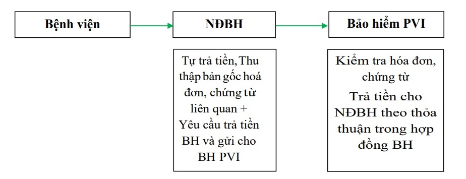 Trường hợp Người được bảo hiểm ứng trước tiền trả cho bệnh viện khi Người được bảo hiểm khám chữa bệnh ngoại trú và khám chữa bệnh nội trú ngoài hệ thống bệnh viện bảo lãnh viện phí của Bảo hiểm PVI):
